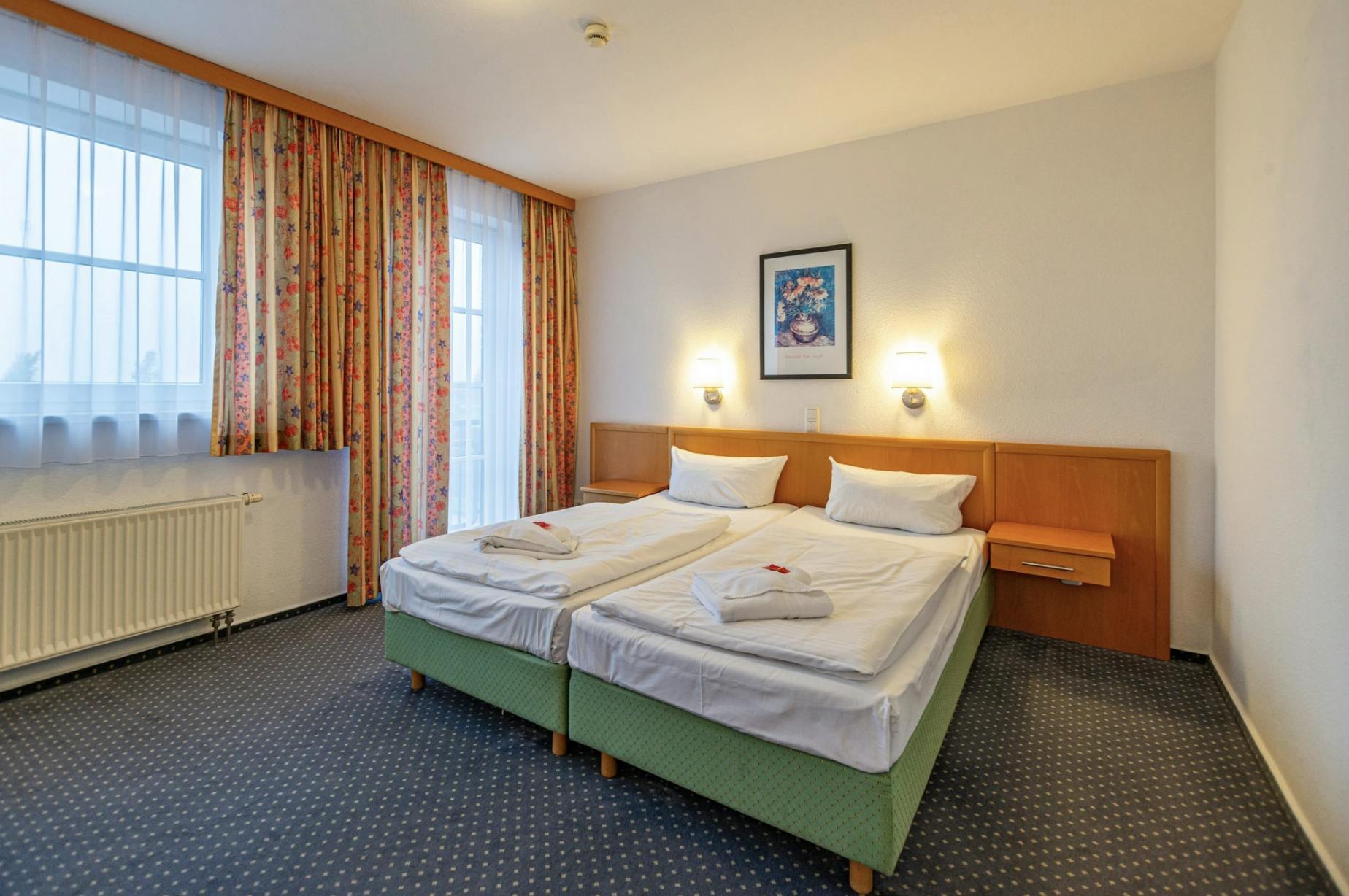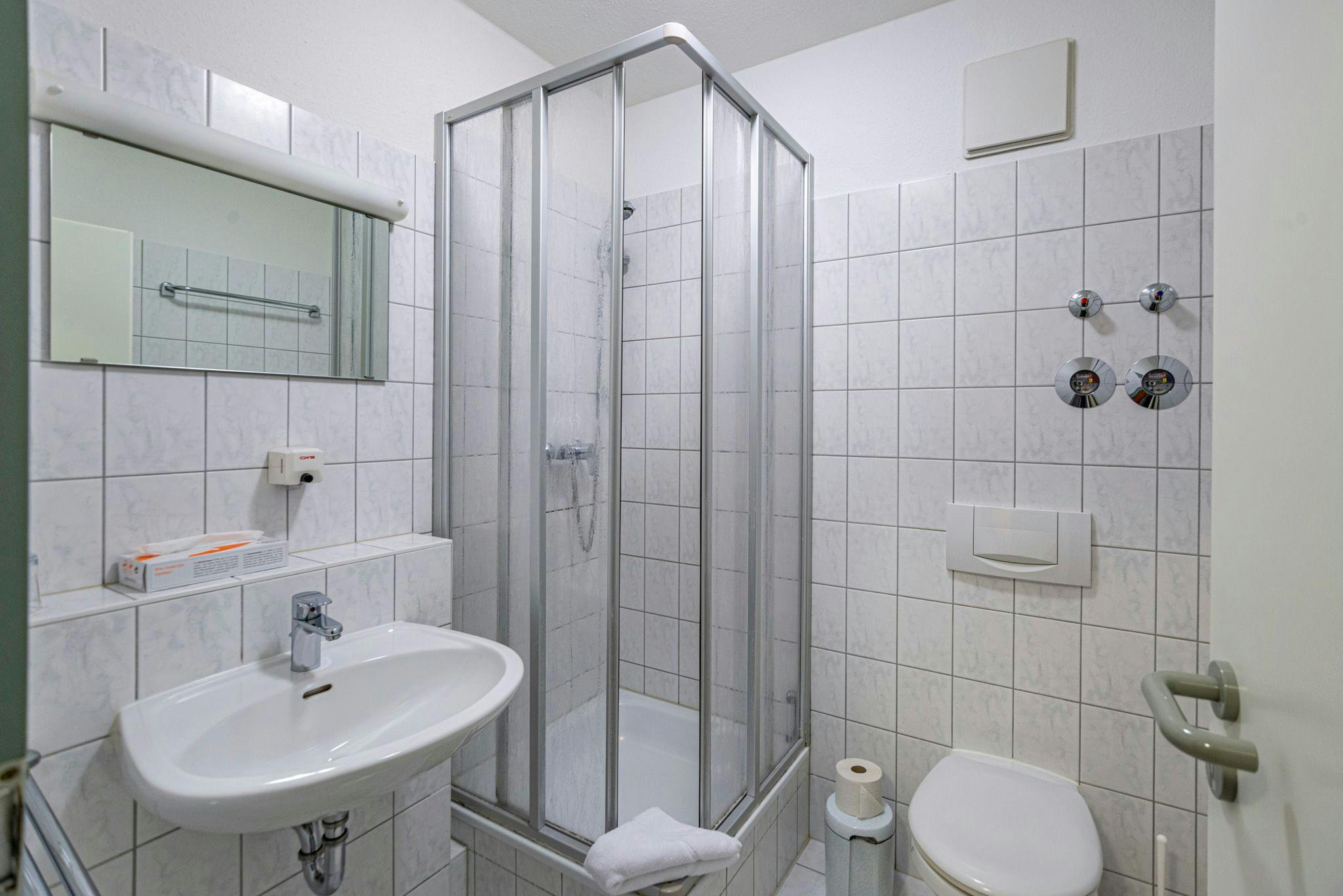 Die Doppelzimmer sind komfortabel und solide eingerichtet, verfügen über ein Twinbett (0.90 x 2.00), Nachttisch mit Lampe, Kofferablage, kleiner Schreibtisch, Kabel - TV, Radio, Wecker und ein Duschbad mit Toilette.